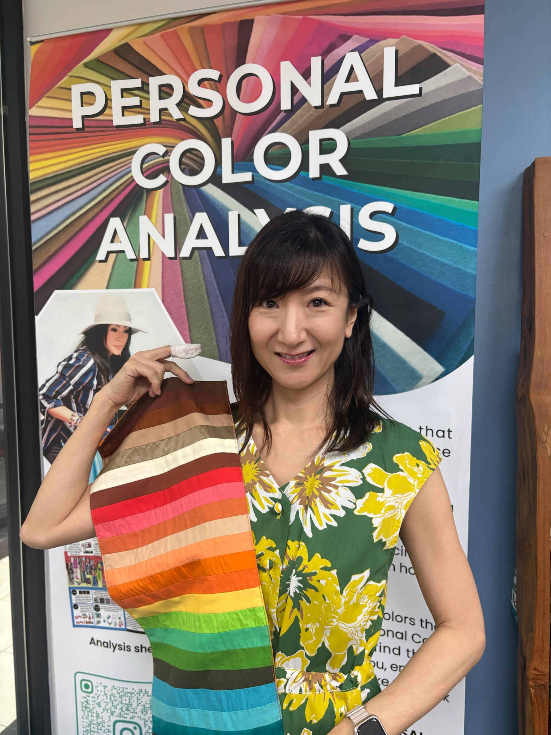 私のように色選びに迷われている方々にも、似合う色を取り入れていただき、毎日を明るく楽しい気持ちで過ごしていただけるようなお手伝いができれば嬉しく思います。私自身、学びを通して色が気持ちに与える力を実感してきましたので、その経験を活かしながら、一人ひとりに寄り添ったご提案をしていきたいと思います。これからも色のことを深く学び続け、暮らしの中に彩りや笑顔を増やせる存在になれたらと願っています。