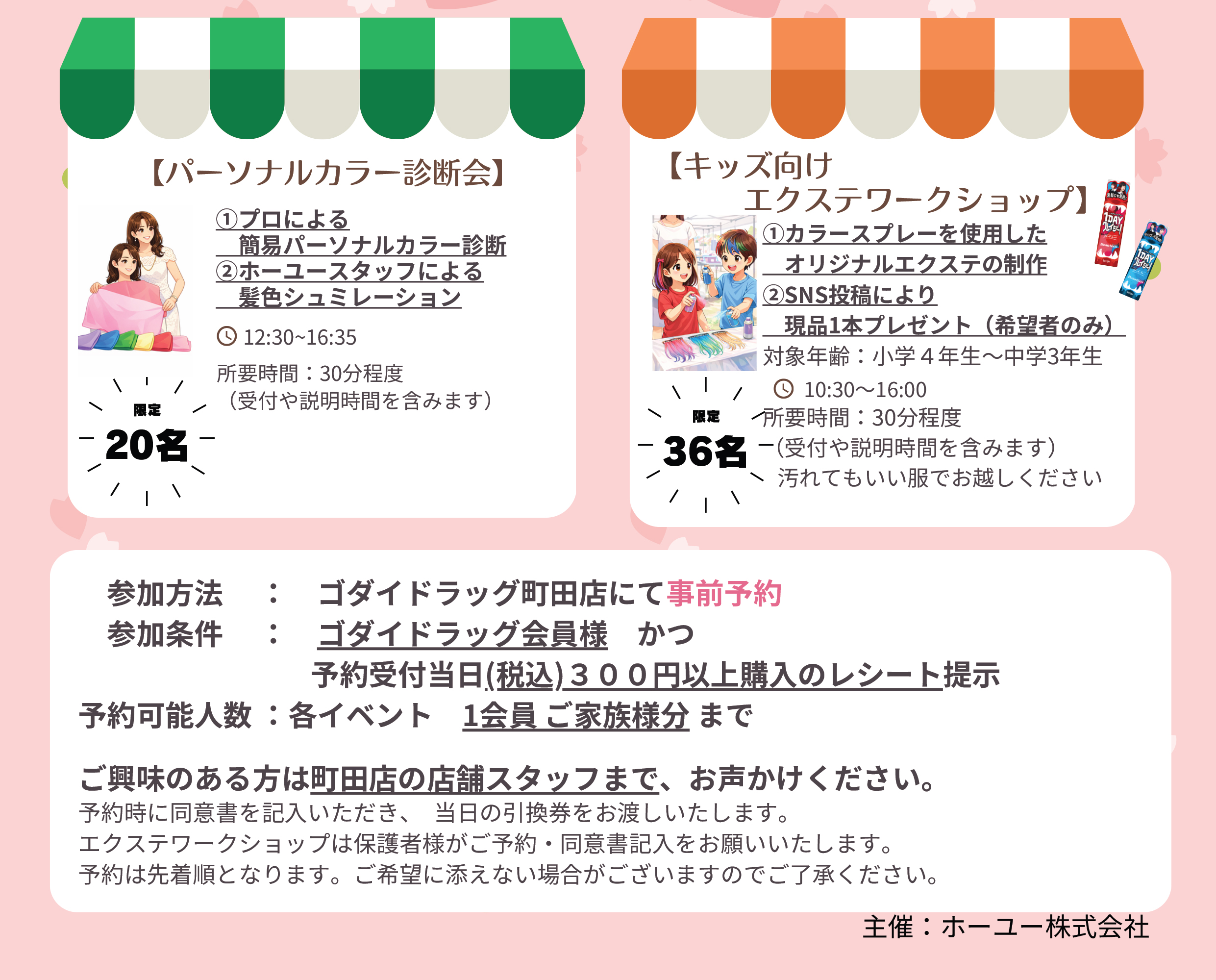 3/20(金・祝)ゴダイドラッグ町田店(兵庫県姫路市)「パーソナルカラー診断イベント」のご案内